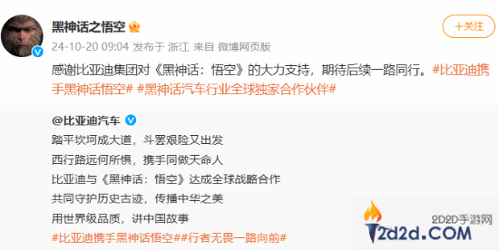《黑神话》联动比亚迪引热议:做个筋斗云版不卖爆?