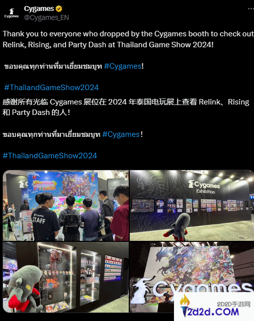 Cygames也在推特发文感谢了玩家们在本次展会对旗下游戏的支持。