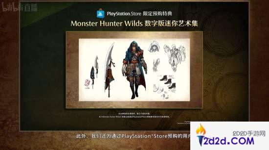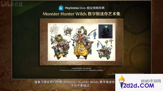 此外,通过PS商店预购的用户还将获得《怪物猎人:荒野》数字版迷你艺术集,其中包括各种武器、猎人以及艾露猫的原画设定,千万不要错过。