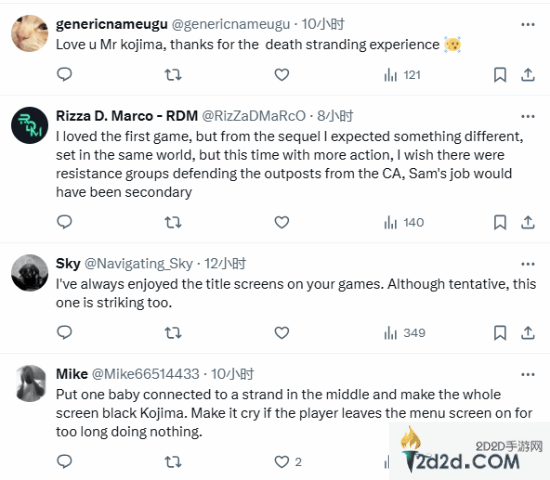 日前,小岛秀夫在X再次晒出了《死亡搁浅2》的临时开始菜单,说道:“我忙于配音录制、每周会议、游戏改版以及显示屏监控等事务,完全没有时间玩游戏。哦,这个画面只是暂时的,还在制作中。”