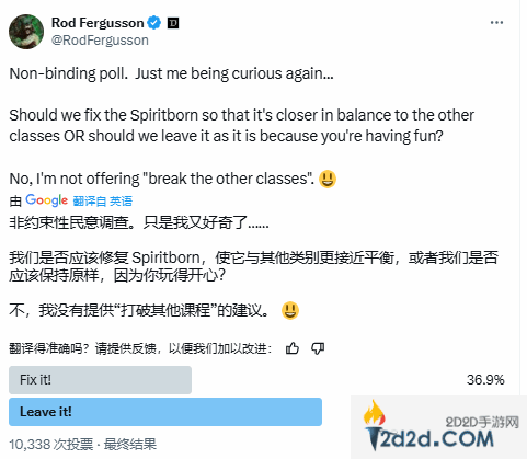 在这份玩家调查中,Rod希望玩家们表态:是要将灵巫bug修复彻底,还是保留让大家玩的尽兴?