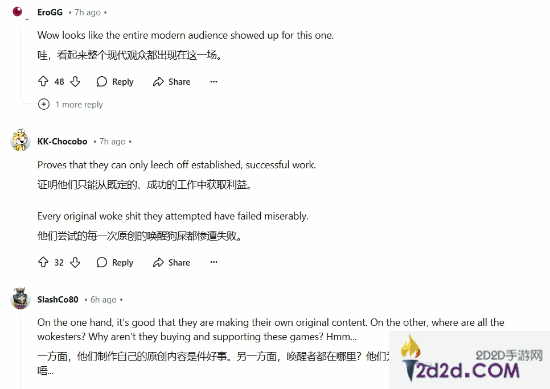 还有网友嘲讽称,“看来现代观众都到场支持这款游戏了。”一些玩家则讽刺为何“觉醒”文化的拥护者怎么没能让这款游戏取得成功:“他们为何不购买并支持这些游戏呢?”