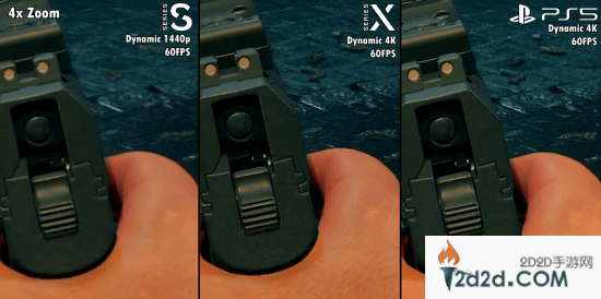 总结:质量模式下(XSS为2K,另外两个是4K),三款主机均有轻微掉帧情况,由场景复杂度决定。而在120帧的性能模式下,配置较低的XSS表现最差,能掉到70-80帧,甚至缺失很多特效与图形细节。从结果来看,XSX的表现优于XSS,但在帧数稳定性和运行效果方面稍微低于PS5。