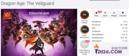 《龙腾世纪4:影障守护者》媒体评分现已解禁。截至发稿,本作在OpenCritic评分网获得84媒体均分,媒体推荐度为83%,收录媒体37家。
