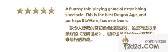 一款令人惊叹的奇幻角色扮演游戏。这是有史以来最好的《龙腾世纪》,也许也是BioWare有史以来最好的游戏。