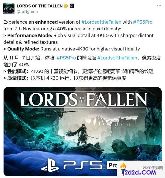 《堕落之主》首发支持PS5 Pro增强 像素密度提升40%