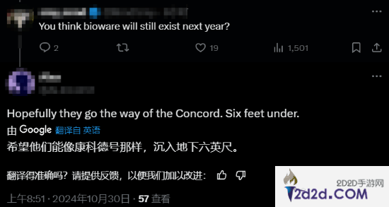 下方评论区还有网友锐评:“说不定明年Bioware就不存在了呢。”“希望Bioware会像《星鸣特攻》一样直接入土。”