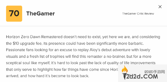 《地平线:零之曙光复刻版》M站均分86:画质显著提升