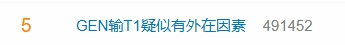 10月31日,#GEN输T1疑似有外在因素#话题登上微博热搜。