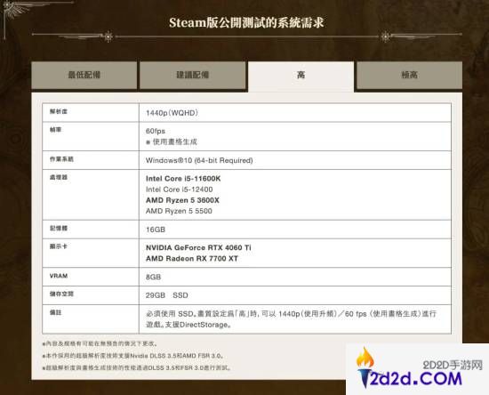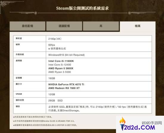但本作的PC版本优化可能会没那么理想,在此前的媒体体验中就传出了本作存在大量优化问题,来到优化难度更高的PC,各位玩家需要做好无法畅玩的准备:据官方信息,想在2K分辨率下60帧畅玩,显卡至少得RTX 4060Ti或RX 7700XT,处理器需要Intel i5-11600K或AMD R5 3600X,同时得开启帧生成。若提升至4K,那显卡需求会提高至RTX 4070Ti或RX 7800XT。