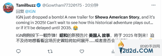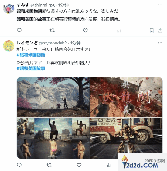同时,日本玩家也纷纷表达了自己的看法:“《昭和米国物语》的预告片来了啊啊啊啊啊!太开心了!”