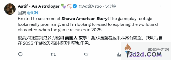 视频一经发布,同样引发了外网玩家们的热议。一位玩家兴奋地表示:“很高兴看到《昭和米国物语》的更多信息!游戏画面看起来非常有前景,我期待在2025年探索这个世界和角色。”