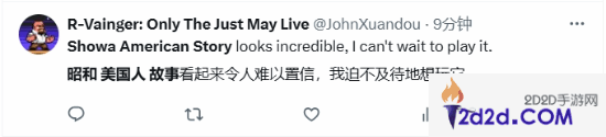 另一位玩家则写道:“《昭和米国物语》看起来真棒,我等不及要玩了!”