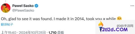 《巫师3》发售已经将近10年,但本作竟然仍有新内容在最近才被发现,《巫师3》的任务设计师Paweł Sasko也发推表示:很高兴看到它被找到了,我在14年就做出来了。