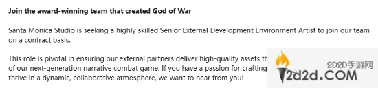 据外媒comicbook报道,索尼圣莫妮卡工作室正在为下一款游戏招揽人才,并表示该款游戏为“下一代叙事战斗游戏”,一起来看下。