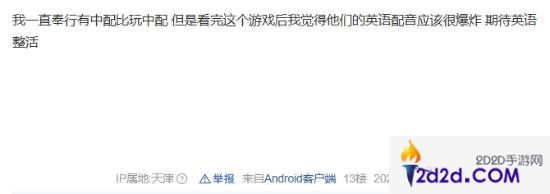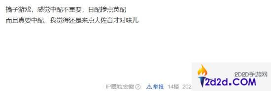 明明是一部国产单机,但此时的网友却给出了中配之外的不同回答:日语、英语、日式英语、美式英语、大佐味中配……
