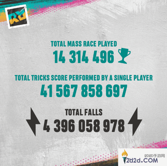 官推还公布了本作截至目前的统计数据,其中玩家们已累积参加了超1431万场大规模竞速,共获得超415亿特技得分以及共发生了接近44亿次坠落。