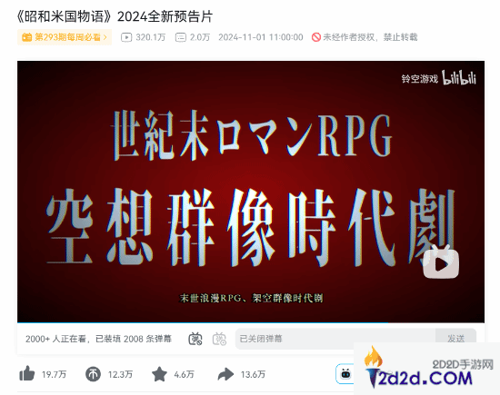 由铃空游戏制作的末世群像RPG游戏《昭和米国物语》已于前几日公开了全新PV,但PV公开后热度不减,目前播放量已经超过300万人次!