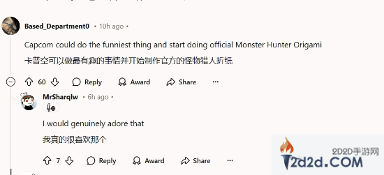 “我希望卡普空能发布一个图形模式更新,让怪物变成多边形。或者至少把它们放在一个免费的装饰包里。”