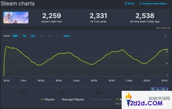 据最新数据,《地平线:零之曙光 复刻版》的同时在线玩家人数明显低于《地平线:零之曙光 完整版》在Steam平台上的表现。复刻版的峰值玩家人数甚至未能突破3000人,而原版游戏依然保持了较高的玩家活跃度。