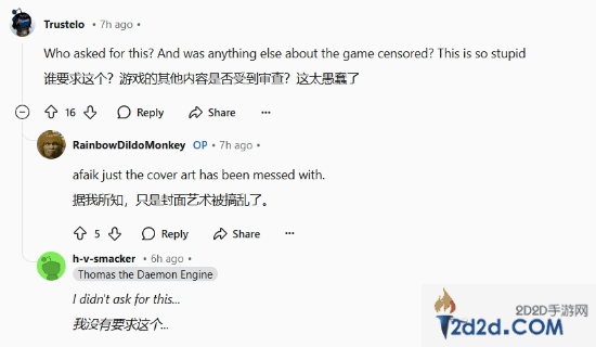 “谁要求这么改的?游戏的其他部分有没有被审查?这真是太愚蠢了。”