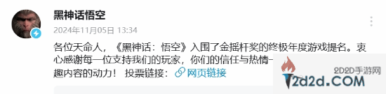 《黑神话》官方国内为金摇杆拉票 网友热议DLC啥时候来?