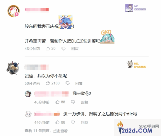 “股东的我表示庆祝!并希望再苦一苦制作人把DLC加快进度吧”。
