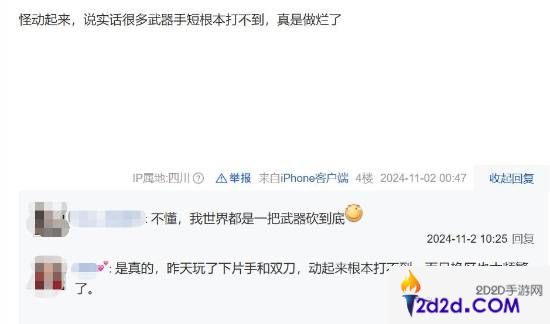 有人表示,由于这代转向设计的改变,更依靠集中模式对怪物伤口进行输出,而这导致很多“手短”的武器根本打不到移动的怪物伤口。