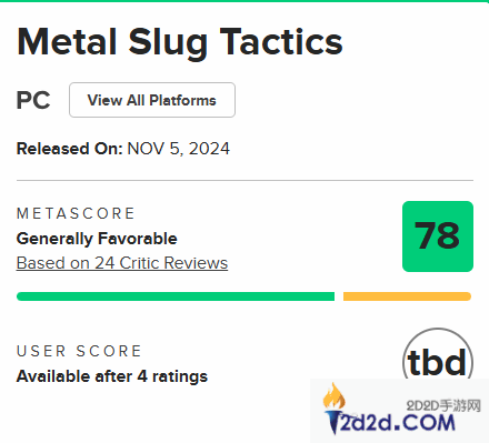 由Leikir Studio开发的Roguelite策略战术RPG《合金弹头:战略版》媒体评测现已解禁,截至发稿前,游戏在M站的均分为78分,共收录24家媒体,17家媒体给出好评,7家媒体给出中评,没有媒体给出差评。