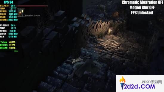 GAMESMARK的PC使用了AMD Ryzen 5 7600X、32GB DDR5 RAM和NVIDIA RTX 4070这一配置,在4K分辨率下,游戏能够以70帧到110帧左右的规格运行。