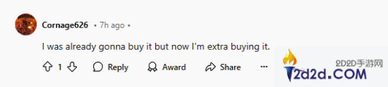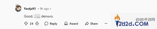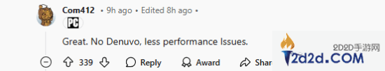 有玩家将消息分享到Reddit论坛后,随即引发玩家热议,玩家们纷纷支持Warhorse Studios的这一举动,说道:“太好了,没有D加密,(游戏的)性能问题就少了,首发必买。”还有玩家锐评道:“终于有开发商选择了品质,而不是贪婪。”