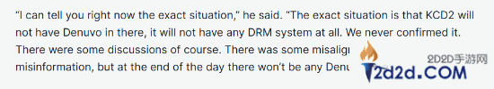 据IGN报道,开发团队Warhorse Studios已明确回应《天国:拯救2》不会使用D加密技术,同时游戏也不会有任何DRM系统。