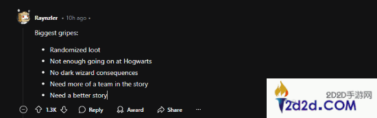 对此,许多玩家对《霍格沃茨之遗2》的改进寄予厚望,指出初代游戏存在的一些不足,包括开放世界稍显空洞、支线任务缺乏吸引力、部分主线剧情略显重复、战利品系统过于随机等问题,希望这些能在续集中得到改进。此外,考虑到《霍格沃茨之遗》的高收益,也有玩家担心华纳可能会在续作中引入服务型内容。