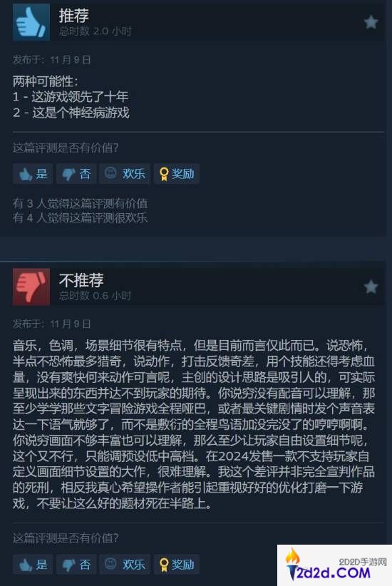 尽管游戏很有意思,有令人眼前一亮的优点,但整体体验下来缺陷也不少,很多玩家认为198元的定价不太合理。有给出“不推荐”的玩家表示:“我这个差评并非完全宣判作品的死刑,相反我真心希望操作者能引起重视好好的优化打磨一下游戏,不要让这么好的题材死在半路上。”