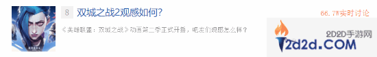 《英雄联盟》世界观衍生动画剧集《双城之战》第二季现已正式开播,腾讯视频和B站同步上线,引发网友们的热烈讨论。截止至发稿时,话题“双城之战2观感如何?”登上贴吧热议榜第8位。