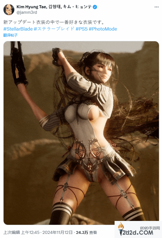 《剑星》与《尼尔》的联动内容将于11月20日正式上线,除了尼尔主题2B等服饰外,还将有四套全新战衣、配件以及照相模式、多语言口型支持更新等。日前,Shift Up首席执行官金亨泰发推谈到了新更新的灰色战衣「战裙」,并表示:“这是本次更新里我最喜欢的服装。”