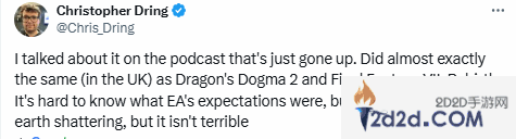 当然,目前还不知道EA和生软方面对本作的预期以及正式发售后对市场表现的看法,但克里斯托弗认为《龙腾4》目前的表现并不算差。