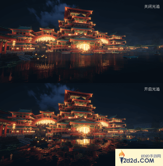 官方表示,除了人为的光影塑造,为了进一步增强画面品质和武侠沉浸感,也引入了最新的“光线追踪”的技术。在支持硬件加速的情况下去生成更逼真的光影效果,让大世界中常见的水面、镜面等反射和折射更加自然,也让武侠世界中的复杂光影呈现得更加写实。