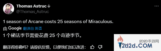 而就在近日,知名法国动漫《奇迹少女》(Miraculous: Tales of Ladybug & Cat Noir)的导演托马斯·阿斯特鲁克在推特上发文吐槽:“《双城之战》一季的预算都够我做25季了!”