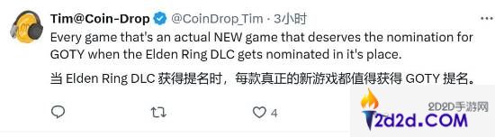 还有玩家谈到今年允许DLC评年度游戏的规则,认为非常不合理,应该把DLC这个类别划分到一个单独的游戏奖项当中。