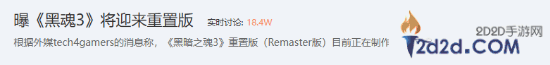 截至发稿前,该消息登上了贴吧热议榜,引发众多玩家热议。很多玩家认为,《黑暗之魂3》的画面以现在的眼光来看并没有什么问题,不如把《黑暗之魂2》和《血源》进行重置。
