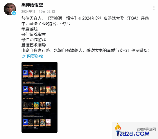 TGA玩家投票现已开启:《黑神话:悟空》官方喊你来投票!