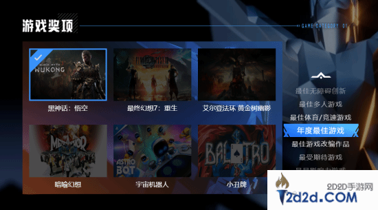 TGA 2024游戏奖项提名现已正式公布,国产瞩目之作《黑神话:悟空》获得了年度游戏大奖、最佳艺术指导奖、最佳动作游戏奖、最佳游戏指导奖四项提名。