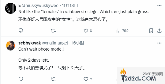 在评论区里,有玩家再次放出《星球大战:亡命之徒》主角凯·维斯的截图并将其对比,说道:“那些觉醒者憎恨美,这就是为什么他们痴迷于毁掉女性角色(的美感)。”还有玩家对即将到来的《剑星》照片模式非常期待。一位玩家直言:“《剑星》的PC版MOD将会很疯狂!”