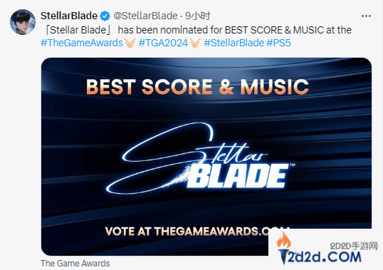 2024 TGA提名名单正式公布,其中《剑星》获得了最佳动作游戏”和“最佳配乐/音乐”两项提名。