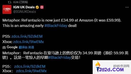 今日盟里手游网报道过《暗喻幻想:ReFantazio》数字版首次降价的新闻,而据IGN消息,本作的实体版光盘也提前开启了“黑色星期五”大促销。