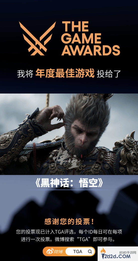 微博TGA官方投票已开启!快来为《黑神话》投票吧!
