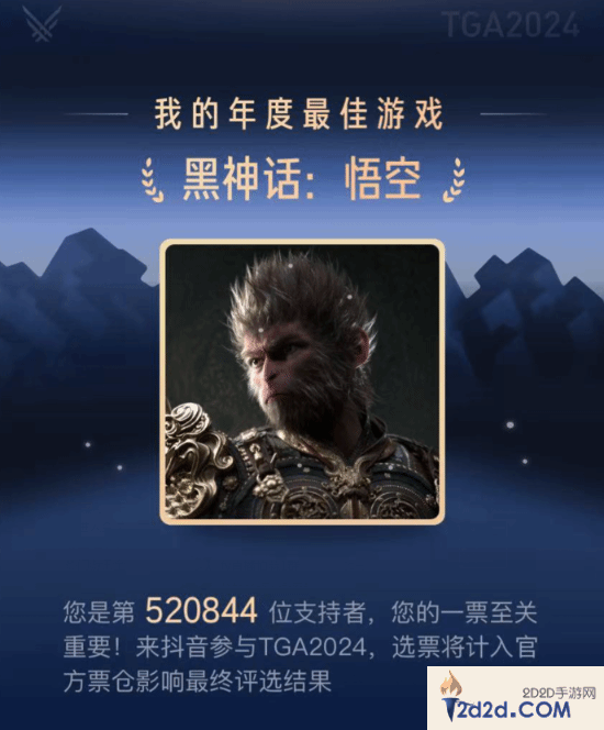 你投了没?《黑神话》年度游戏抖音投票数超52万!