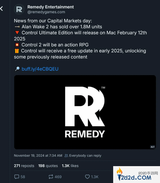 发布会上,Remedy通过几张幻灯片介绍了这一新方向,其中明确提到《控制2》将具备更多角色扮演元素。随后,Remedy也在社交平台Bluesky上确认了这一消息,进一步激起了玩家的好奇心。