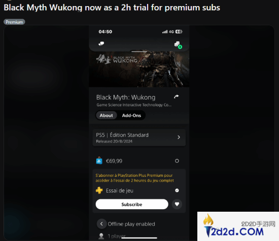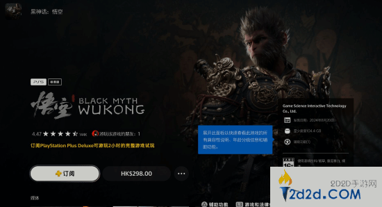 据playstationlifestyle报道,PlayStation Plus三档订阅服务开放了《黑神话:悟空》的试玩权益,订阅用户可免费体验两个小时。